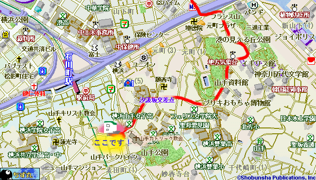 「瑛利奈の山手タロット館」は「中央大学横浜山手」並び、3軒先(道路右側)です。
