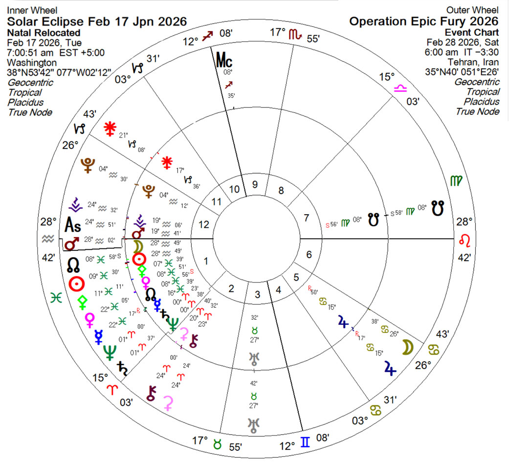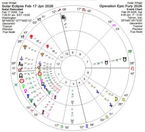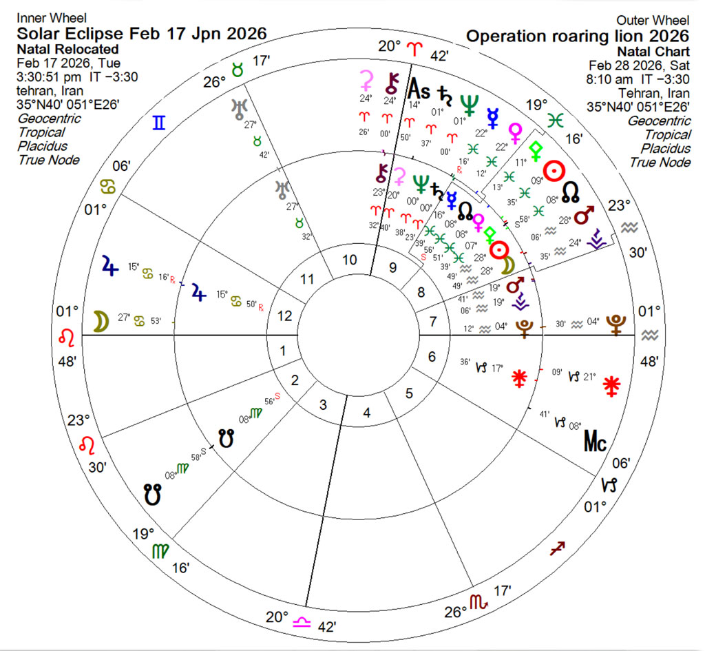 週明け、日経平均株価が大幅続落、一時2800円超安をつけるなど、イラン情勢の混迷で原油も高止まりしています。このままホルムズ海峡封鎖の状態は長期化する模様です。占星学の話に戻しますが、最近私はトランプ大統領が月食の生まれだということに気が付きました。トランプ大統領の誕生日は1946年6月14日ですが、日本時間では月食は15日だったので、見過ごしていましたが、時間をニューヨークの東部時間にすると、月食は午後2時41分ではないですか!トランプ氏の出生時刻は午前10時54分といわれているので、まったく月食まで4時間もないことになります。また、今度のイラン情勢に関わる重要人物…イスラエルのネタニヤフ首相と、イランの殺害されたアリー・ハーメネイ師の二人とも日食の生まれだということも判りました。今回のイランを巡る問題は当事者3人とも日食、月食の生まれになります。また、イラン攻撃が始まった2026年2月28日は、2月17の日食と3月3日の月食に挟まれた期間でもあったのです。日食、月食は、古くは…王の失墜とか、国の崩壊など、ネガティブな意味で捉えられてきましたが、最近はリニューアルなど、前向きな意味で解釈することも多いようです。しかし、イラン情勢で登場する3人の主役がみんな日食、月食の生まれで、イラン攻撃の行く末も泥沼化しそう…となると、やはり「カルマの扉」と呼ばれる昔ながらの解釈についつい引き寄せられてしまいます。これからしばらくホルムズ海峡を通れない状態が続くとなると、呑気な日本人も少し考えなければならないかもしれませんね。日本は石油の備蓄が254日分あるといわれて来ましたが、ホルムズ海峡に依存しているパーセンテージで割らないと真の値が出ないそうなので、答えは95日というのが正解らしいです。嘆いてばかりいても仕方が無いので、今後の星の動きを観てみましょう。今週は太陽の出番が非常に少なく、4月4日に太陽と天王星のセミスクエア(45°)があるだけです。イラン、アメリカ協議はまだ日程が決まっていないようですが、4日になるとすると、他に金星と冥王星のスクエア(90°)もあり、まったく期待できない星の配置です。3日は水星と木星がトライン(120°)を作って、今週の中で唯一話がうまく進みそうな日です。